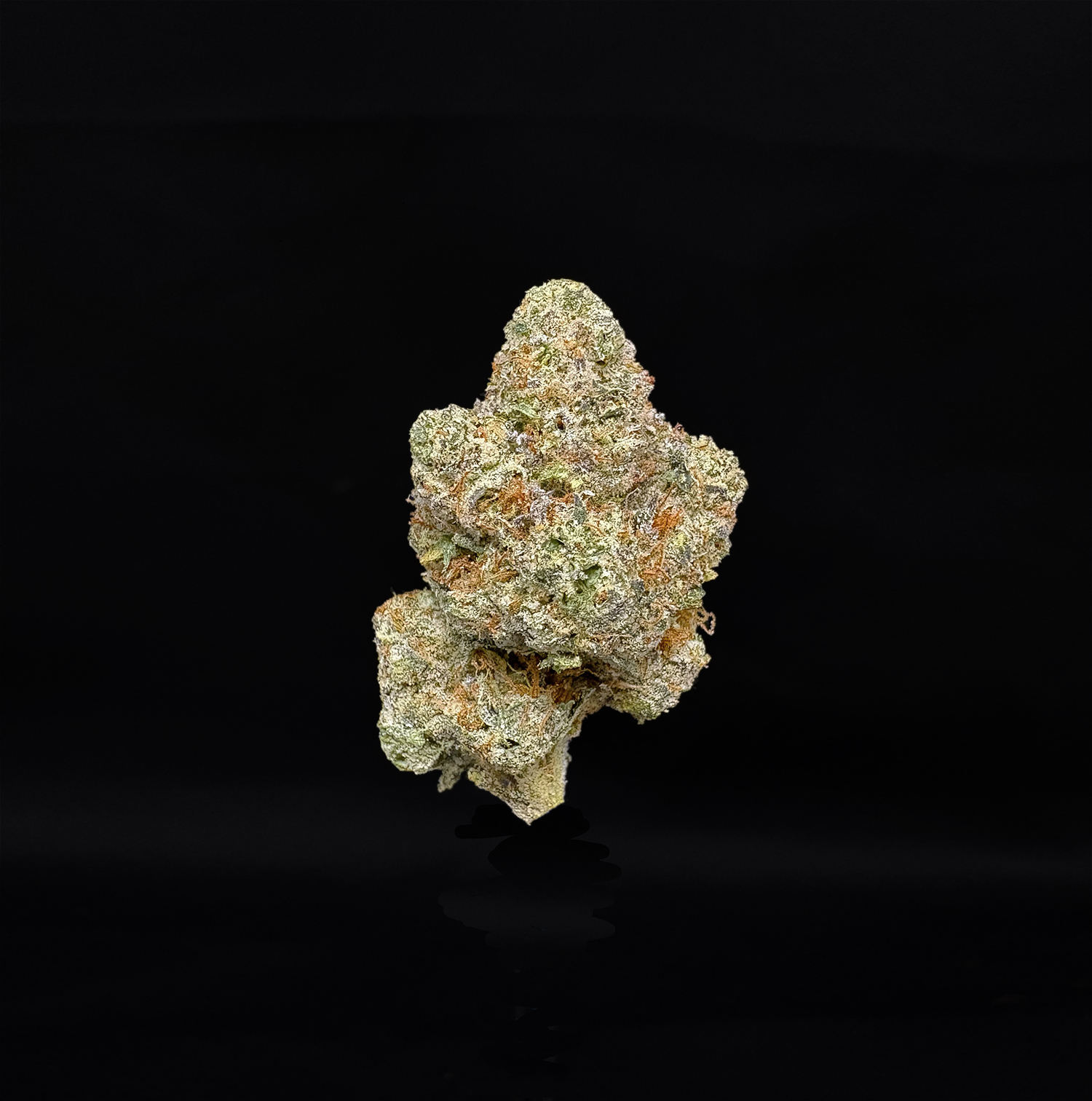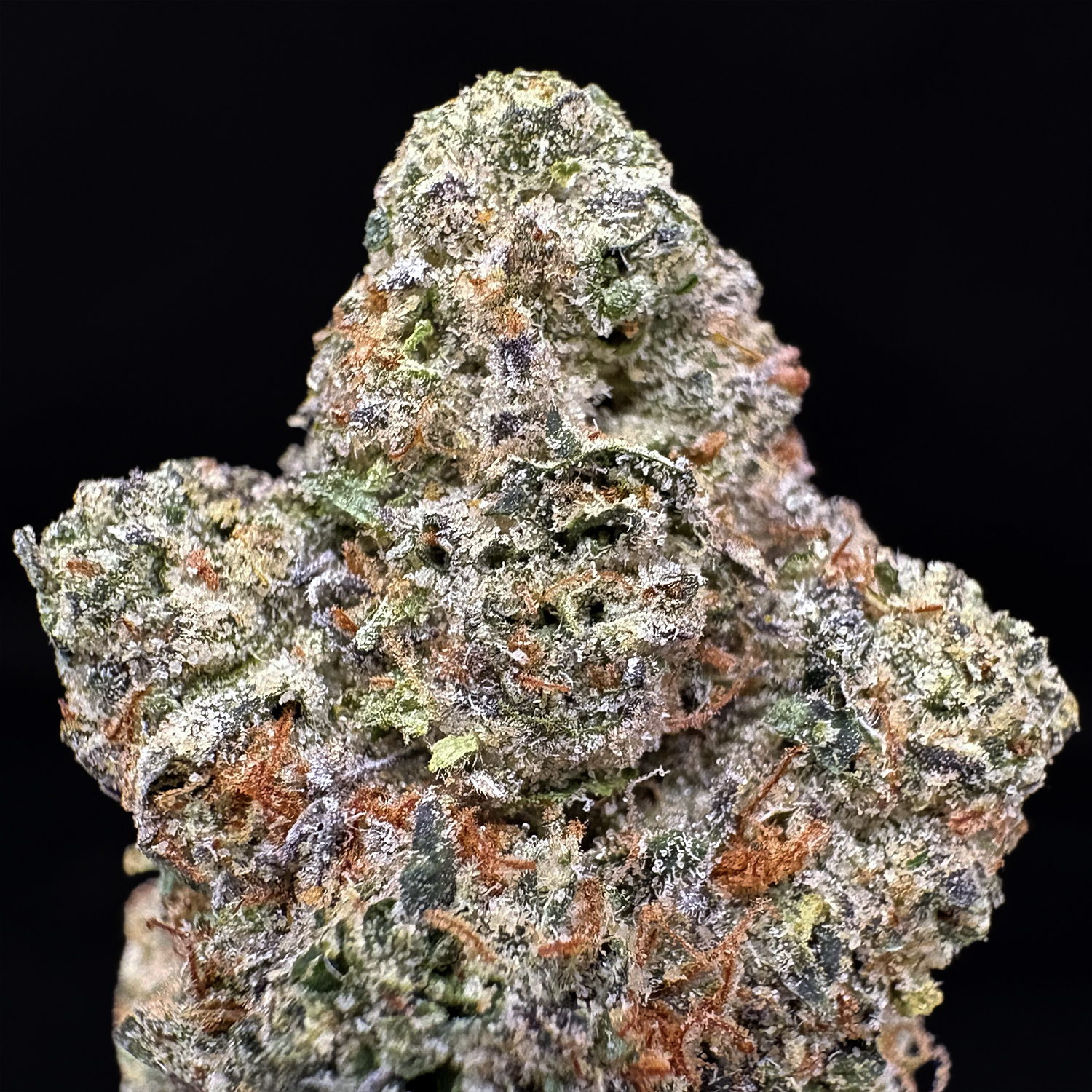 Appearance: Arrowhead-shaped mint green buds, dark olive leaves, orange hairs, milky white trichomes