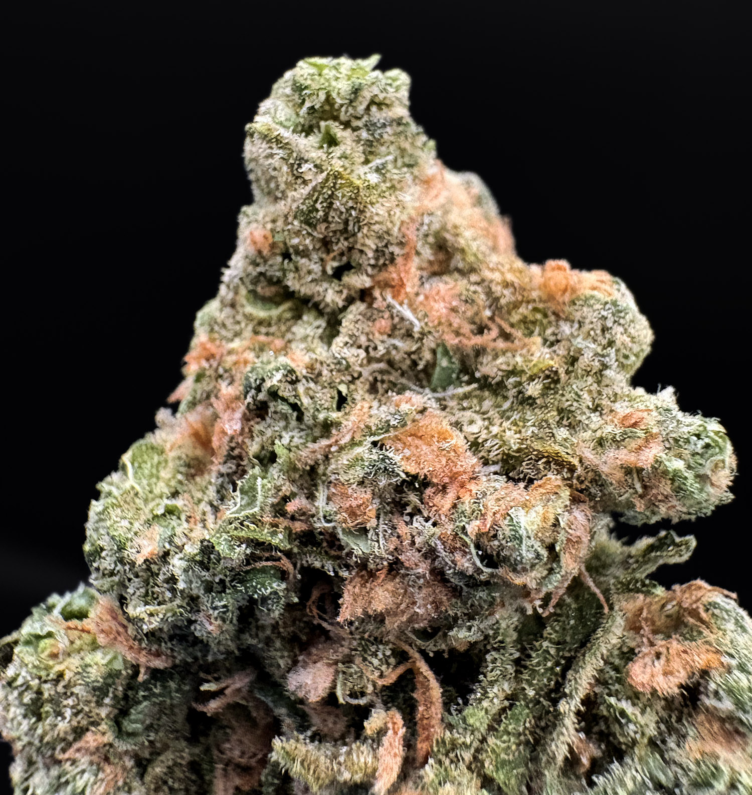 • Appearance: Sage-green buds with blue undertones, frosty trichomes, and orange pistils