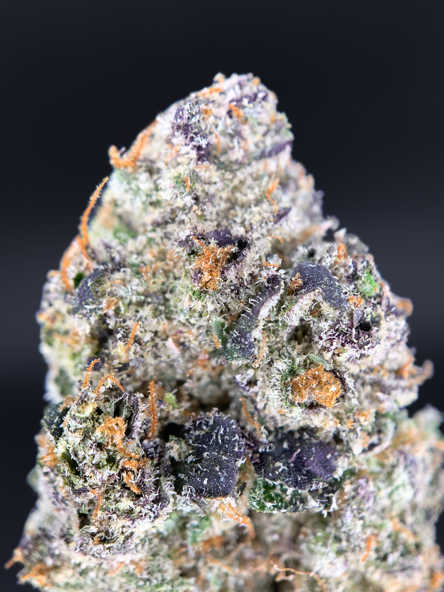 Visually, Blueberry Gumbo is pure top-shelf dominance. Oversized, spade-shaped buds are rock-dense, coated in chunky, purple-tinted trichomes that sparkle under light. Deep olive greens and rich purple hues contrast sharply against thick orange pistils, signaling both freshness and power before the grinder ever comes out.