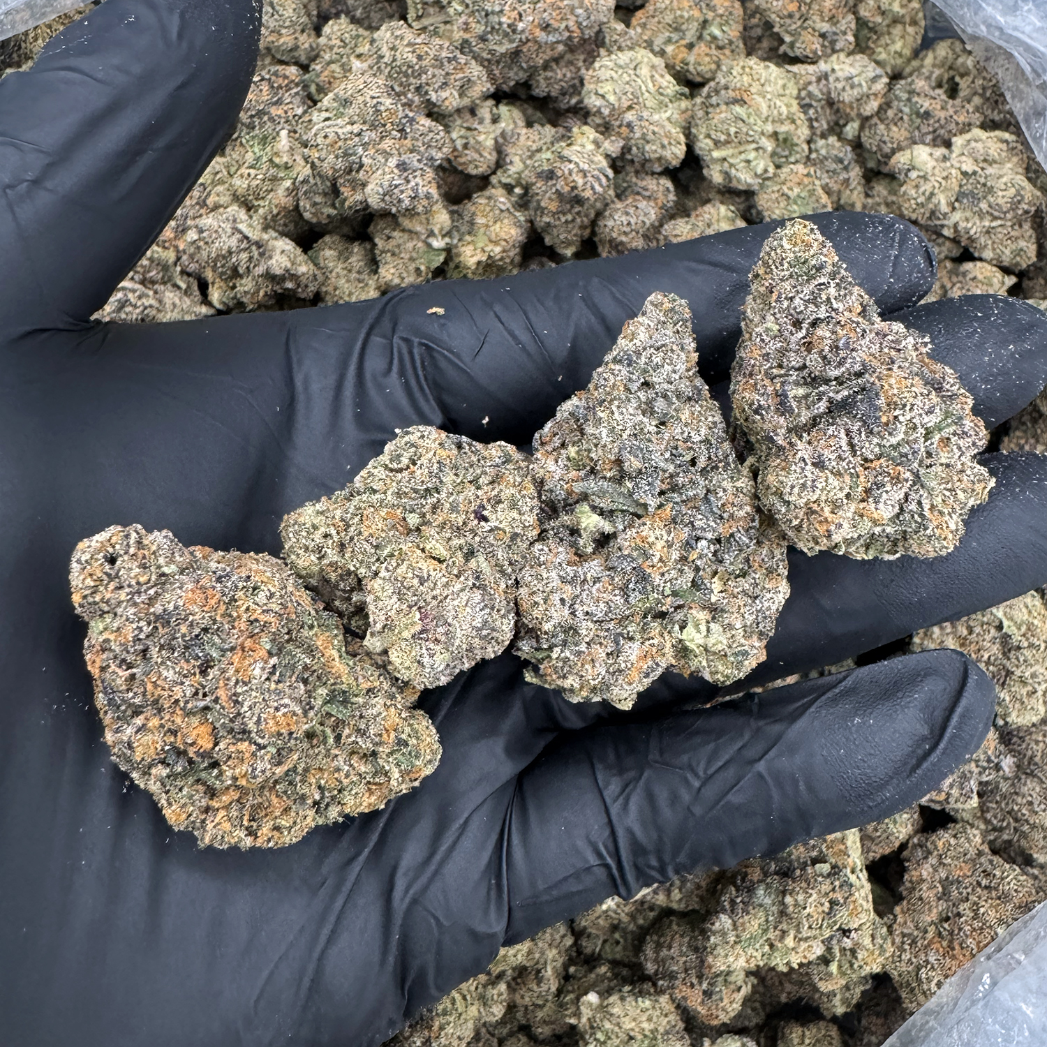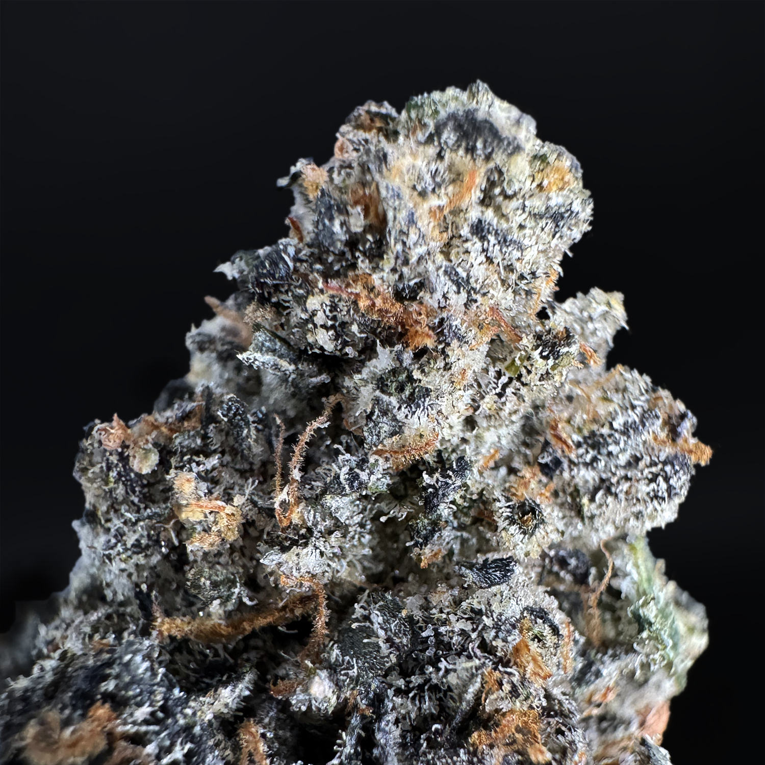 Appearance: Small round dark olive-green buds with amber hairs and chunky amber trichomes