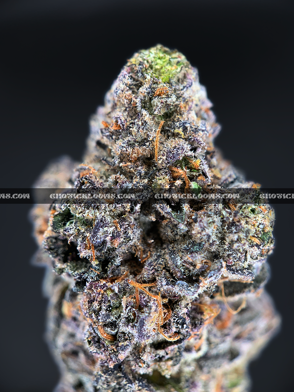 Appearance: Grape-shaped emerald buds with purple hues, orange hairs, and frosty purple trichomes