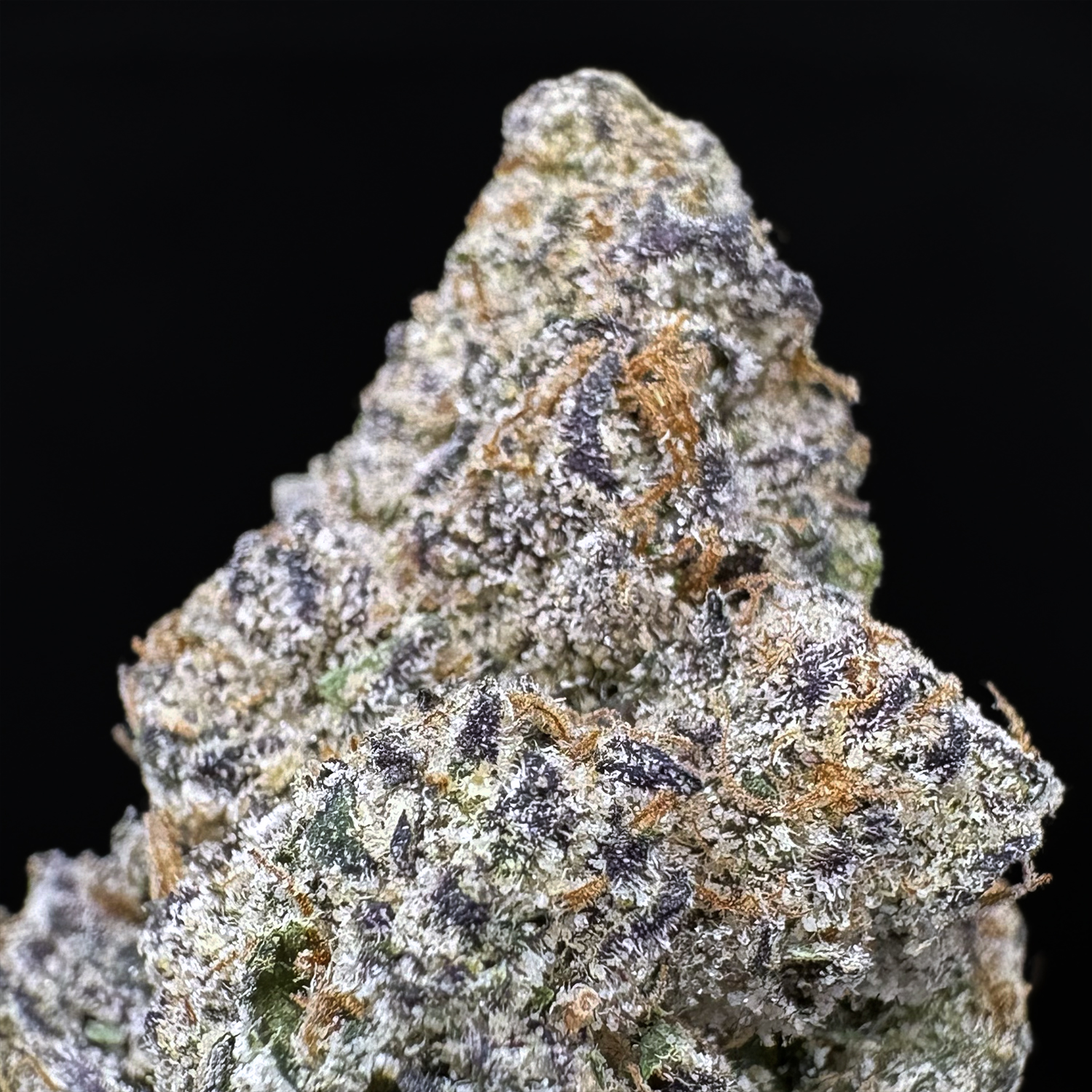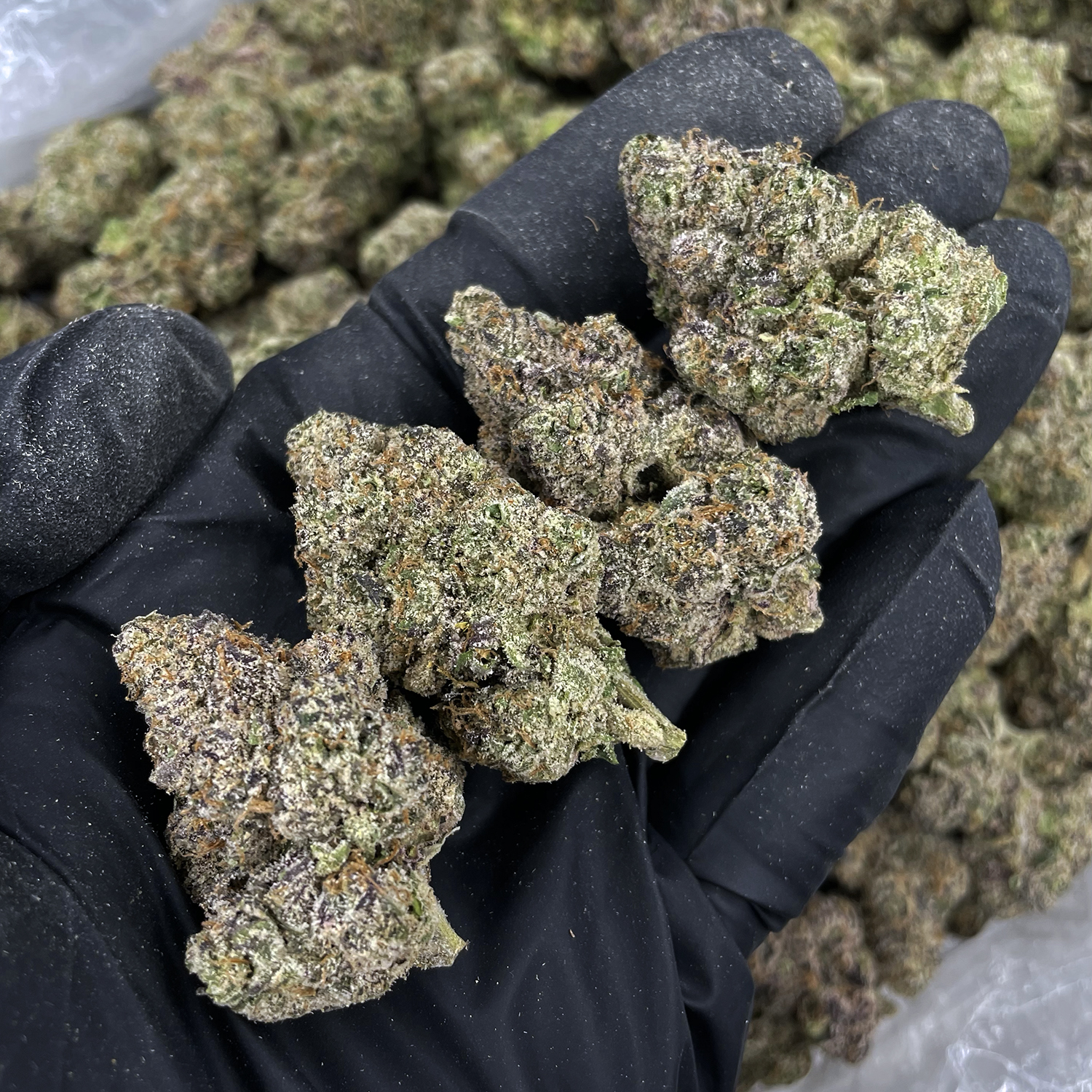 Appearance: Dense grape-shaped buds, forest green with pink undertones, clear crystal trichomes