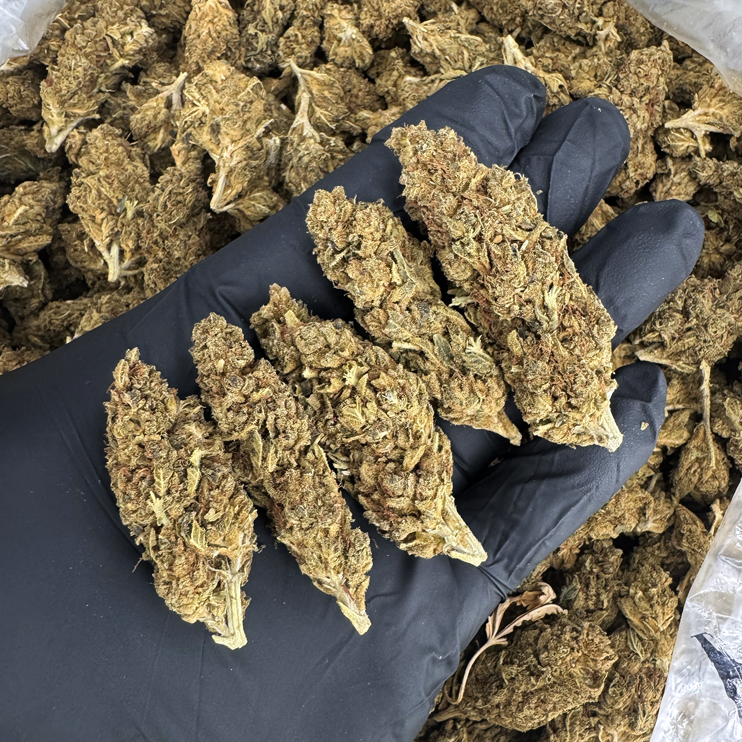 Appearance: Oversized emerald-green spade-shaped buds, golden undertones, orange hairs, amber-tinted trichomes