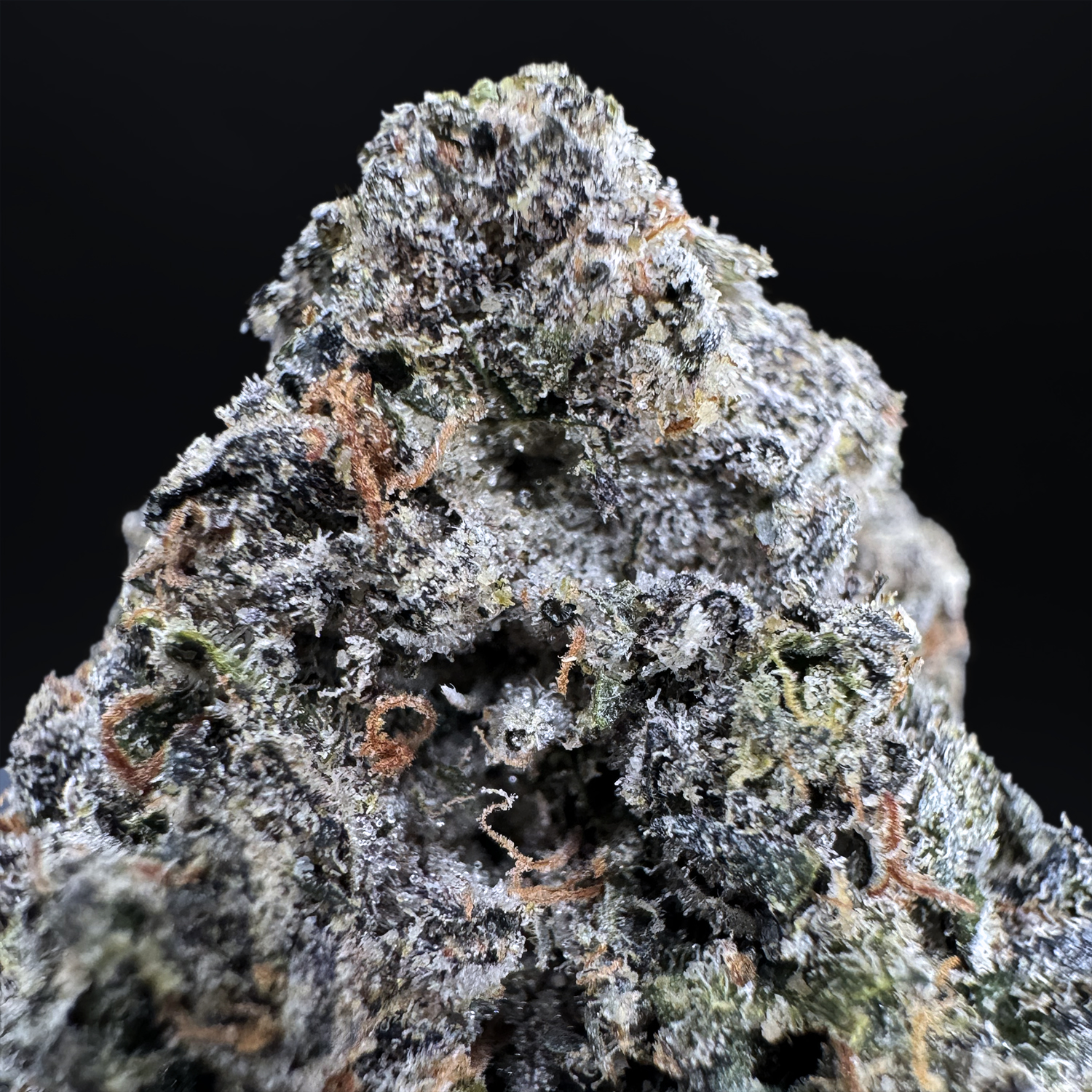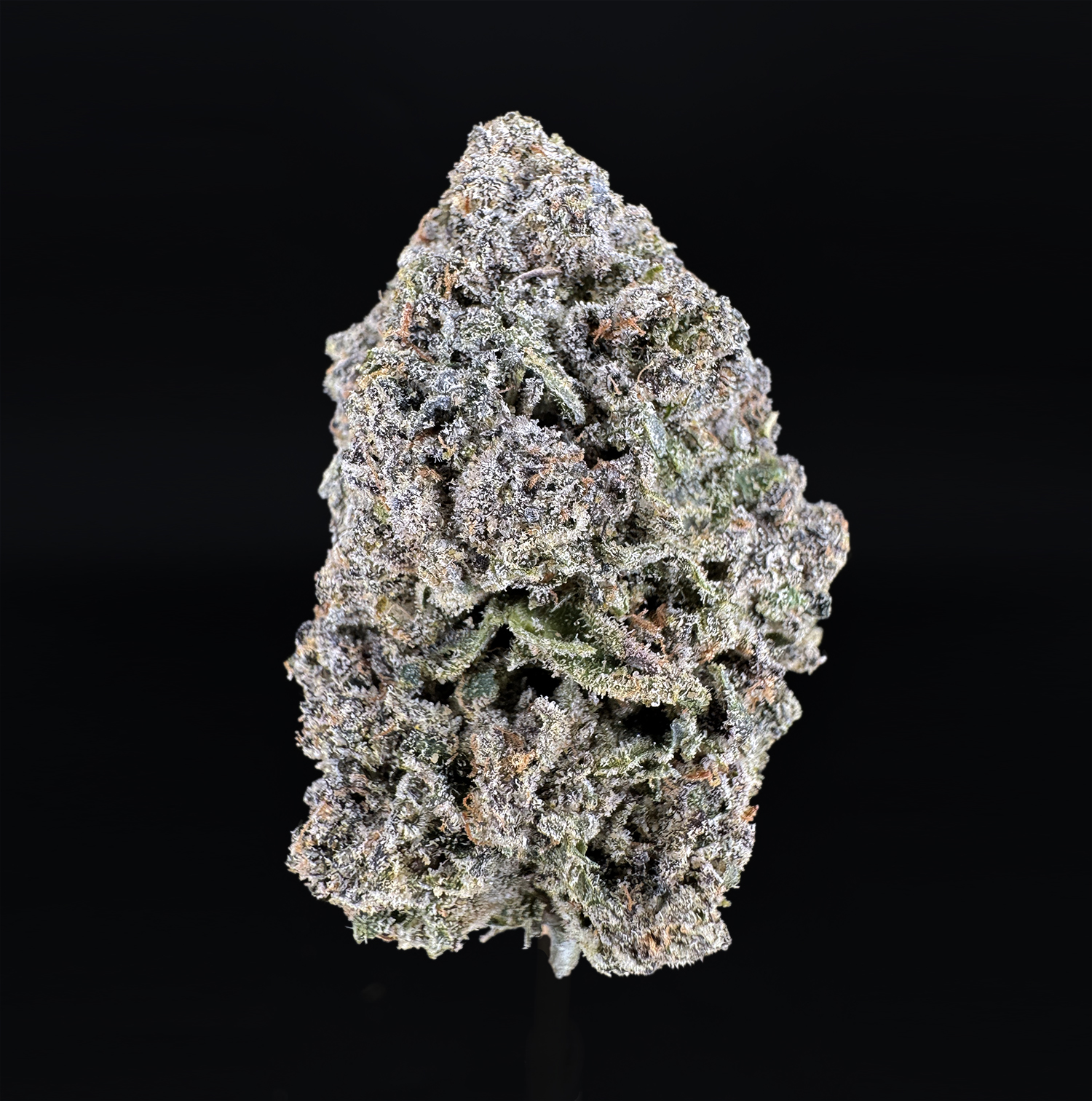 Appearance: Dense, frosty forest-green buds with purple undertones, orange hairs, and lavender-tinted trichomes