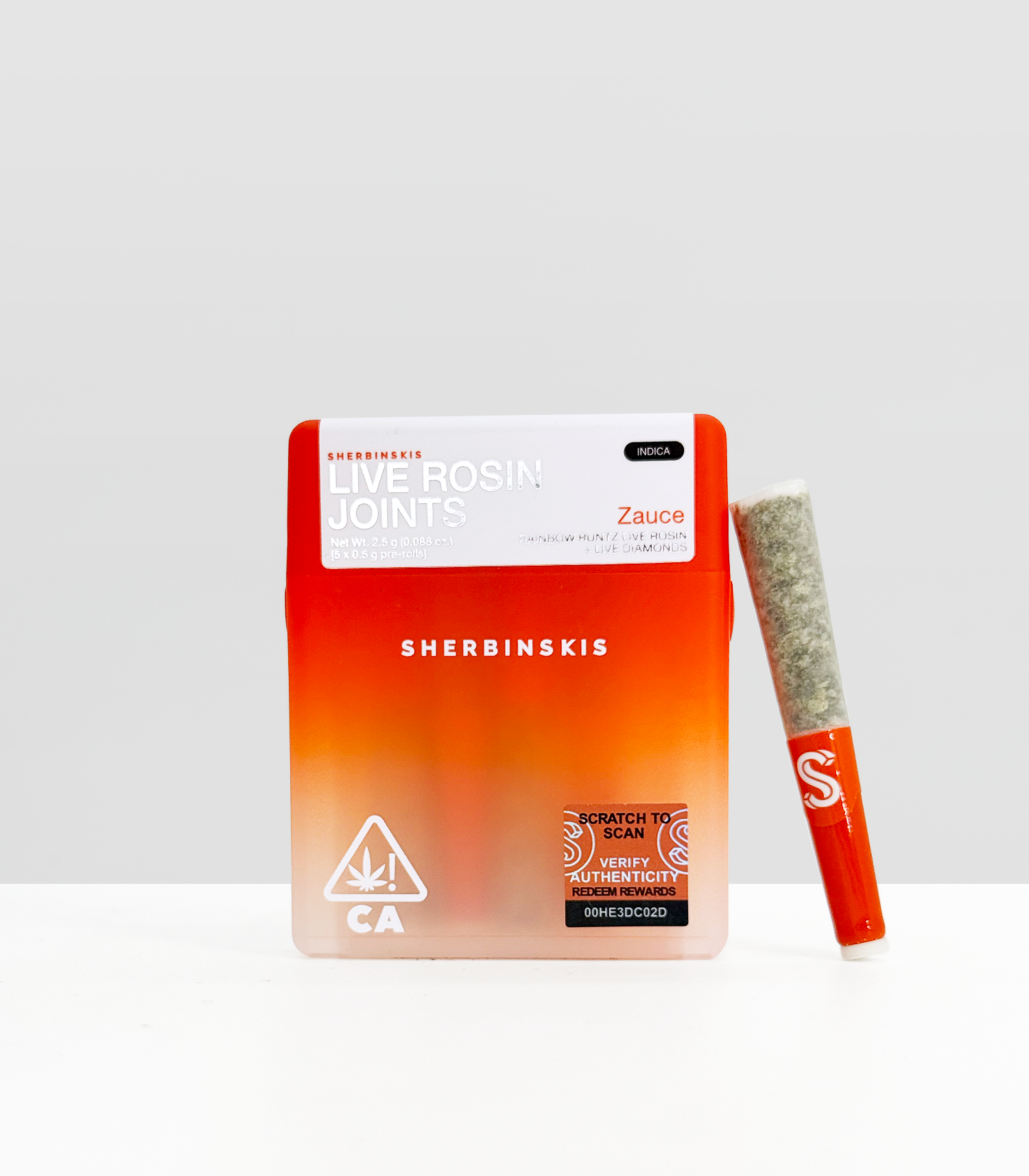 Zauce is an indica-dominant masterpiece from Sherbinskis, offering a rich, syrupy aroma layered with notes of sweet fruit and diesel. Expect a deep, relaxing body high paired with a calm cerebral hazeâperfect for winding down after a long day or enhancing a chill night in. With its live rosin infusion, each puff delivers dense flavor, smooth smoke, and a long-lasting euphoric melt that defines true California luxury cannabis.