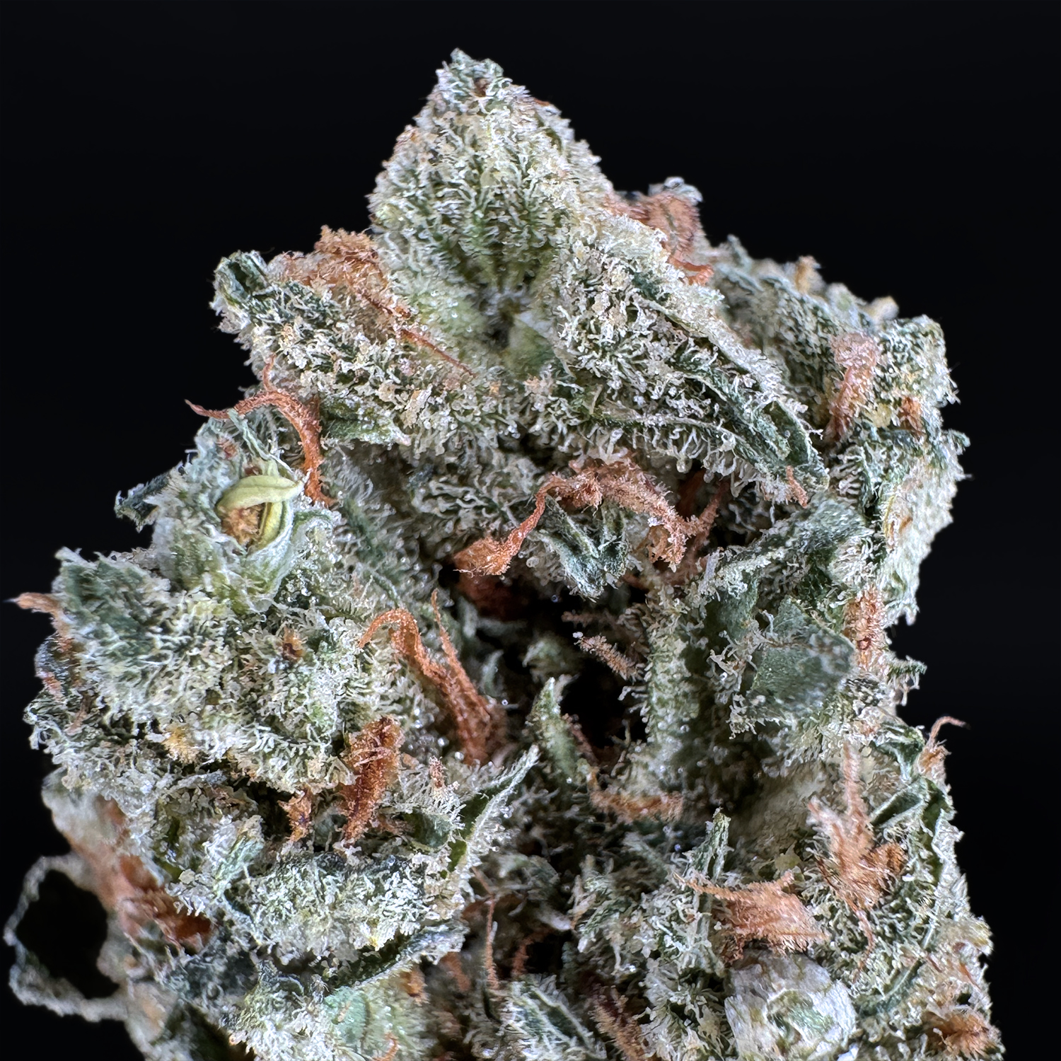 Appearance: Speckled green buds with brown accents, dense trichome coverage