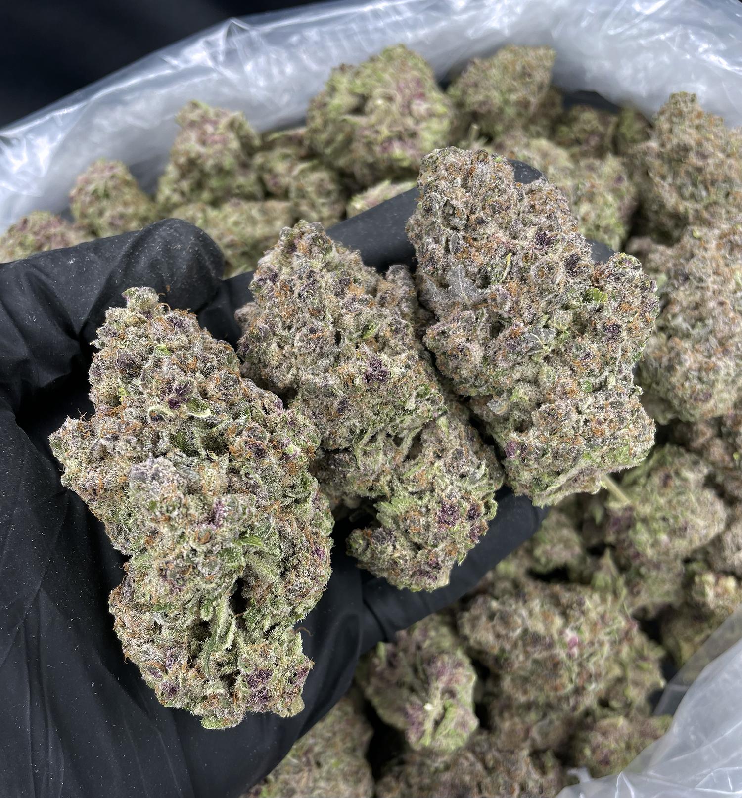 Appearance: Oversized rounded buds with purple undertones and frosty trichomes